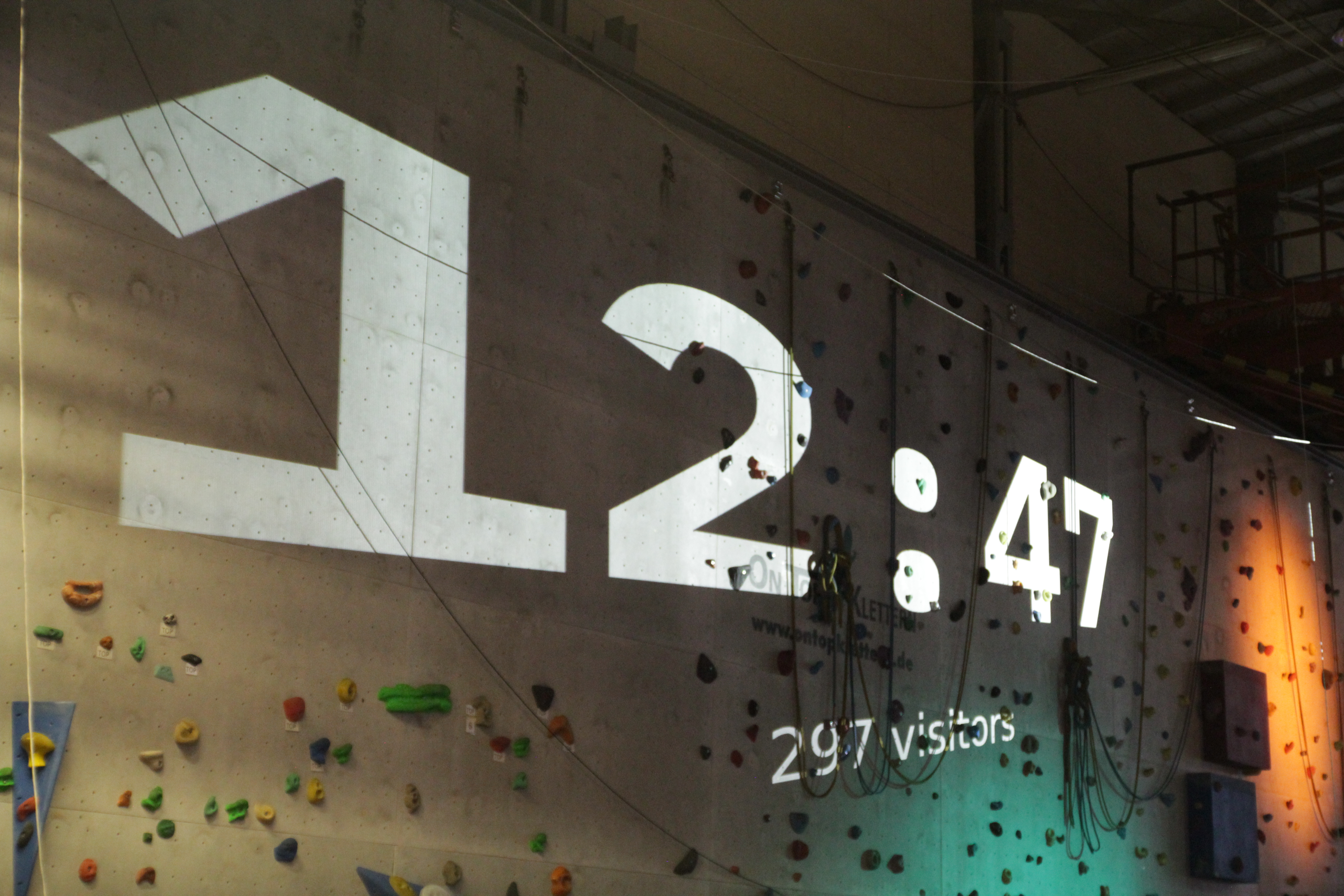 Ikonische Uhr und Besucherzähler auf der Kletterwand // Iconic clock with visitor counter on the climbwall by: Vitus Zeel uploaded: 2023-07-29 18:48:48 |