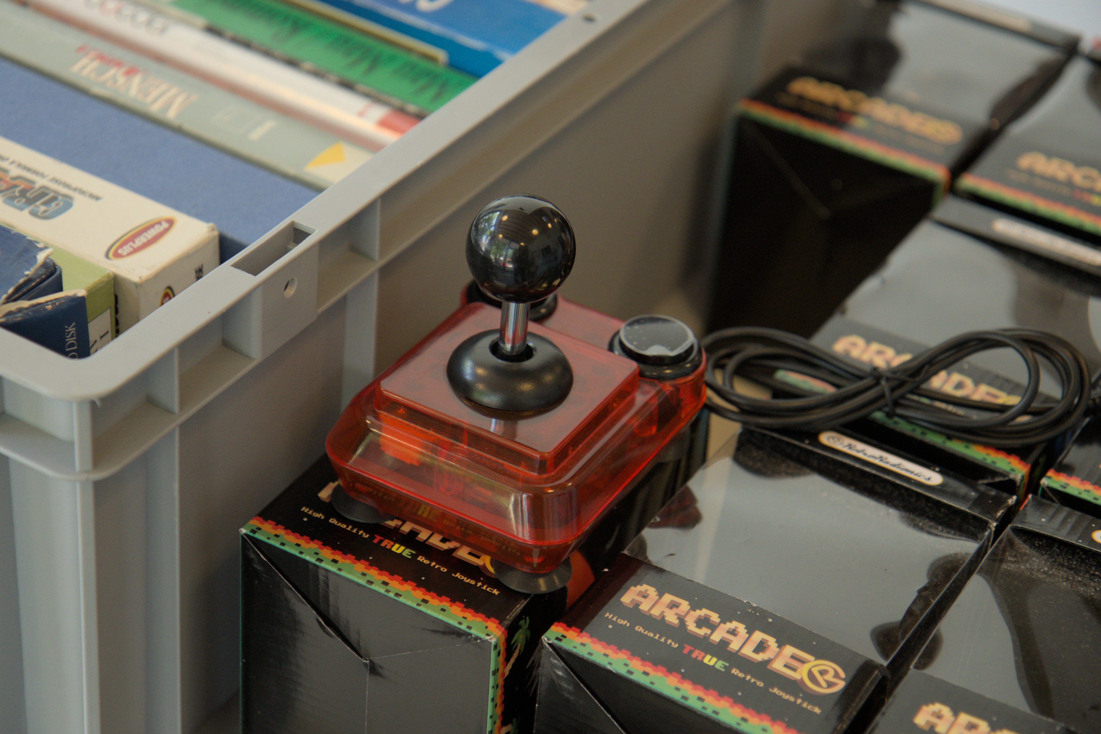 Amiga 1200 Cases and more Joysticks at the upper Floor of the Convention by: Vitus Zeel uploaded: 2025-06-25 10:41:32 |