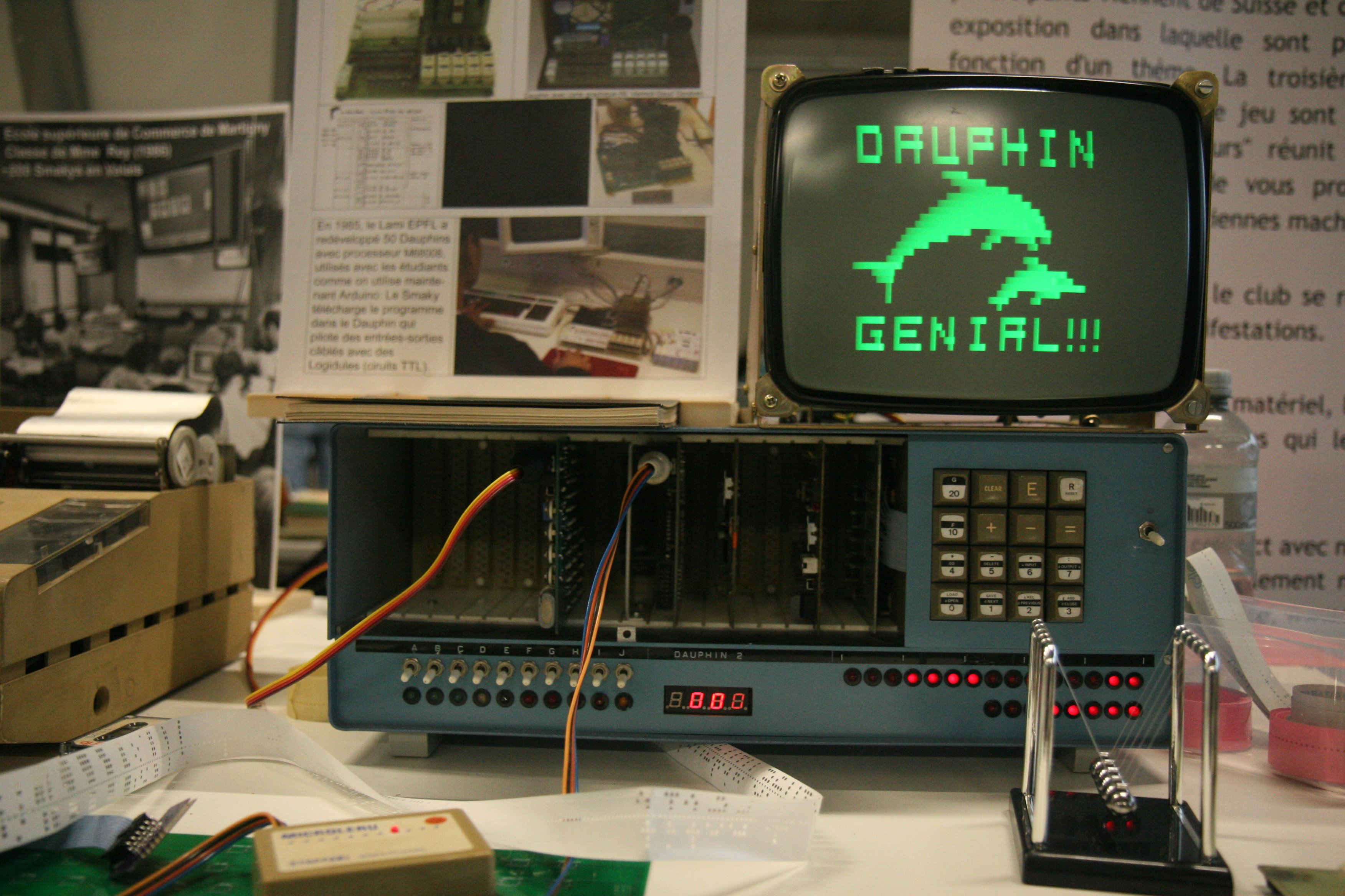 ![]() This Dauphin 2 Computer offers a punchstrip reader that would load the program to show an image and the image itself that you can see on the tiny CRT monitor in the picture by: Vitus Zeel uploaded: 2025-12-30 14:17:24 |