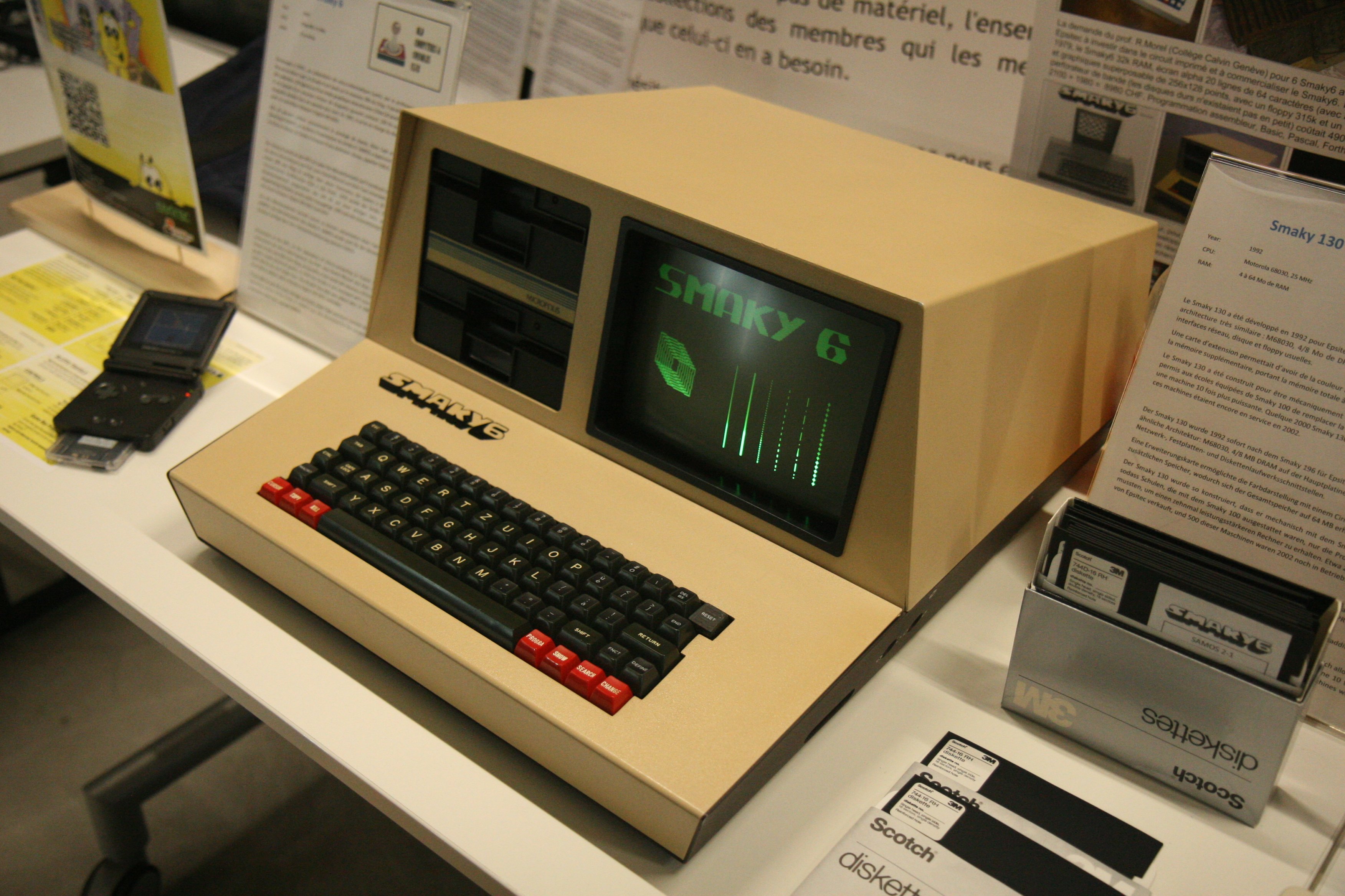 ![]() One of 1500 produced Smaky 100 Computer with Motorola 68000 CPU. The Smaky name is a artifical wordplay from smart and keyboard. This Computerline was created by Jean-Daniel Nicoud at École polytechnique fédérale de Lausanne (Switzerland) and all further development was made by students and EPFL employees by: Vitus Zeel uploaded: 2025-12-30 14:23:35 |